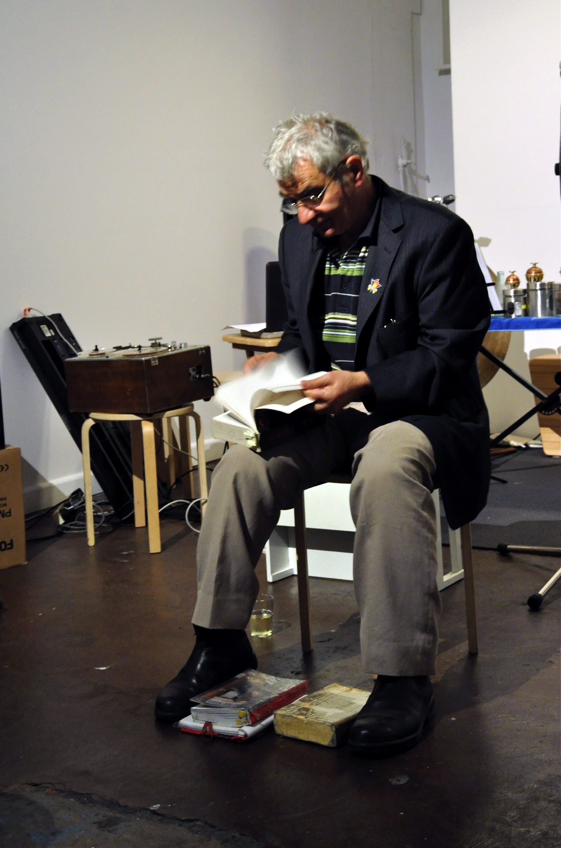 The communication and corruption of biography and autobiography was an accidental theme of Simon Charles’ curated music night at Conduit Arts. When Charles contacted П.O. to read at Melbourne’s newest hybrid arts venue, he didn’t need to give directions. П.O. grew up just across the road, in the few blocks of Fitzroy that eventually made way for the Atherton Gardens housing estate. The audience at Conduit on Thursday night were lucky to hear some of П.O.’s seldom-performed “Fitzroy poems” from 24 Hours, a 740-page poetic record of the neighbourhood in the nineties. In a steady half-shout, П.O. described a walk around the pre-gentrification working class suburb with its cafés, grocery stores and “derros,” relating snatches of dialogue between shopkeepers and passers-by. My favourite moment: On board a tram an old man repeatedly wishes the conductor luck with his 6% pay claim, despite the conductor’s repeated assertion that he isn’t in the Union.