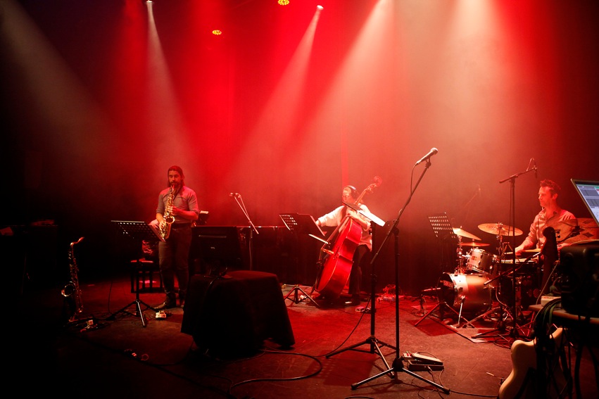 “Splits between real and faked instruments; a hyperactive zapping through styles and stereotypes” is how Hamburg composer Alexander Schubert describes his 2011 Superimpose Cycle for Jazz Quartet and Electronics. This whimsical idea was energetically realised in the work’s Australian premiere by the Argonaut Ensemble, comprising a hybrid instrumentation of piano, saxophone, violin, double bass, electric guitar, drums and electronics. Both the audience and musicians were seated on the dimly lit stage of Bendigo’s Capital Theatre, immersed in a hazy space that became home to disfigured saxophone solos, hammered piano notes and wailing guitar glissandi.