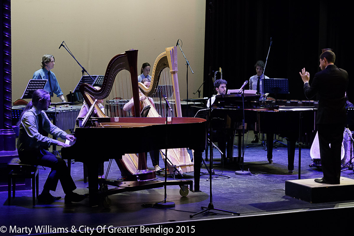 Bendigo’s Ulumbarra Theatre, a converted jail, may soon be home to BIFEM’s resident Argonaut ensemble on a more permanent basis. At Friday night’s opening concert Seeing Double, Bendigo festival founder and featured composer David Chisholm waxed lyrical on the “criminal” lack of this kind of permanent new music infrastructure. “All criminals need to be brought to justice, and this is the jail where that can happen.” BIFEM’s opening double bill of double concerti showed us both the possibilities and temptations of that infrastructure, embodied here by large, skilful instrumental forces and consummate soloists and conductors; a veritable toybox for two precocious postmodernists.