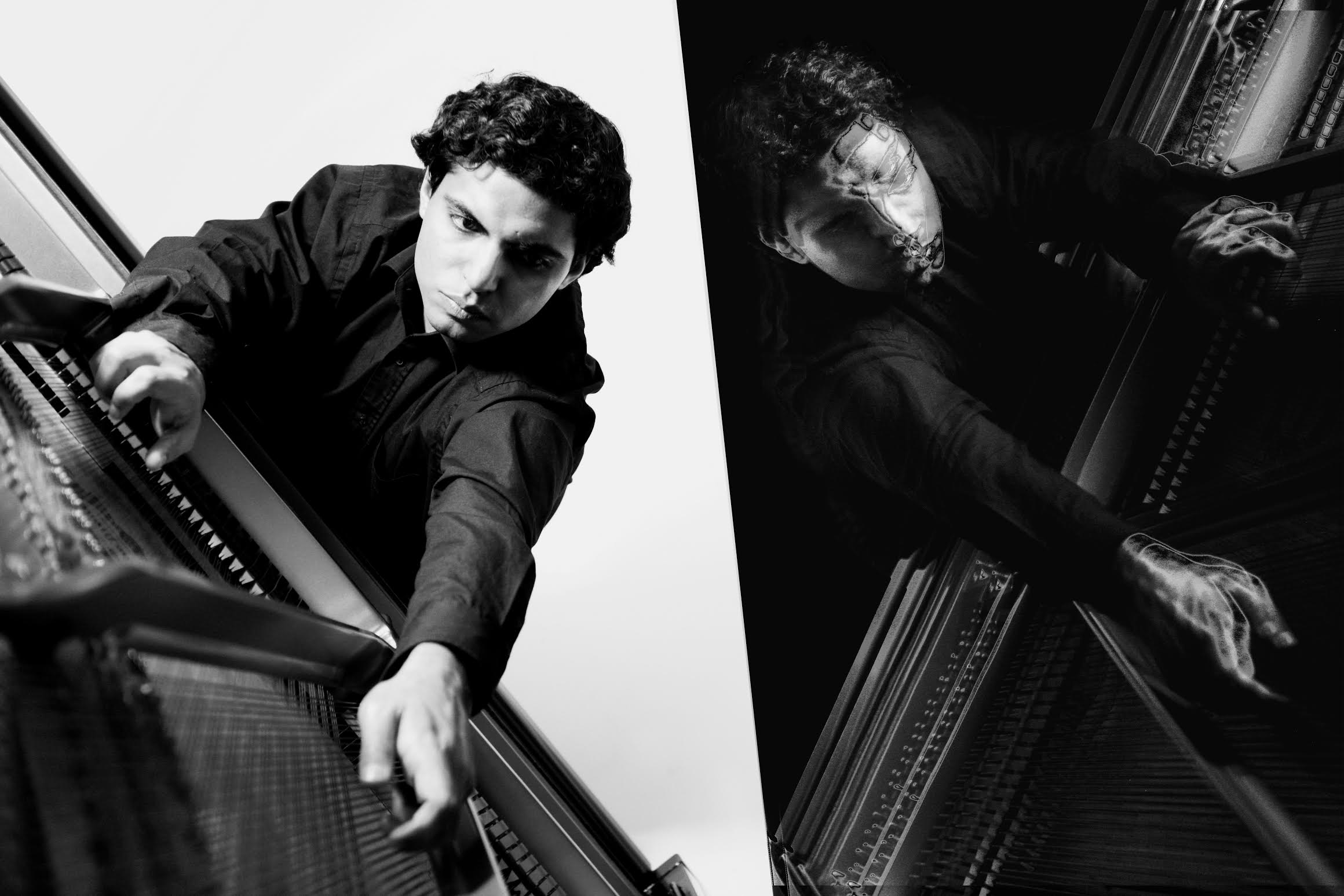 Zubin Kanga always drags half a dozen new works in his wake as he criss-crosses the globe in search of the bleeding edge of piano repertoire. Kanga’s last tour of Australia entitled “Piano: Inside/Out” explored the inside of the piano, either through playing the piano strings directly with the hands or by preparing the strings with objects like paper and Blu-Tac to change their tone. In his current “Dark Twin” tour, Kanga extends the piano outward through live electroacoustic manipulation and video projections.