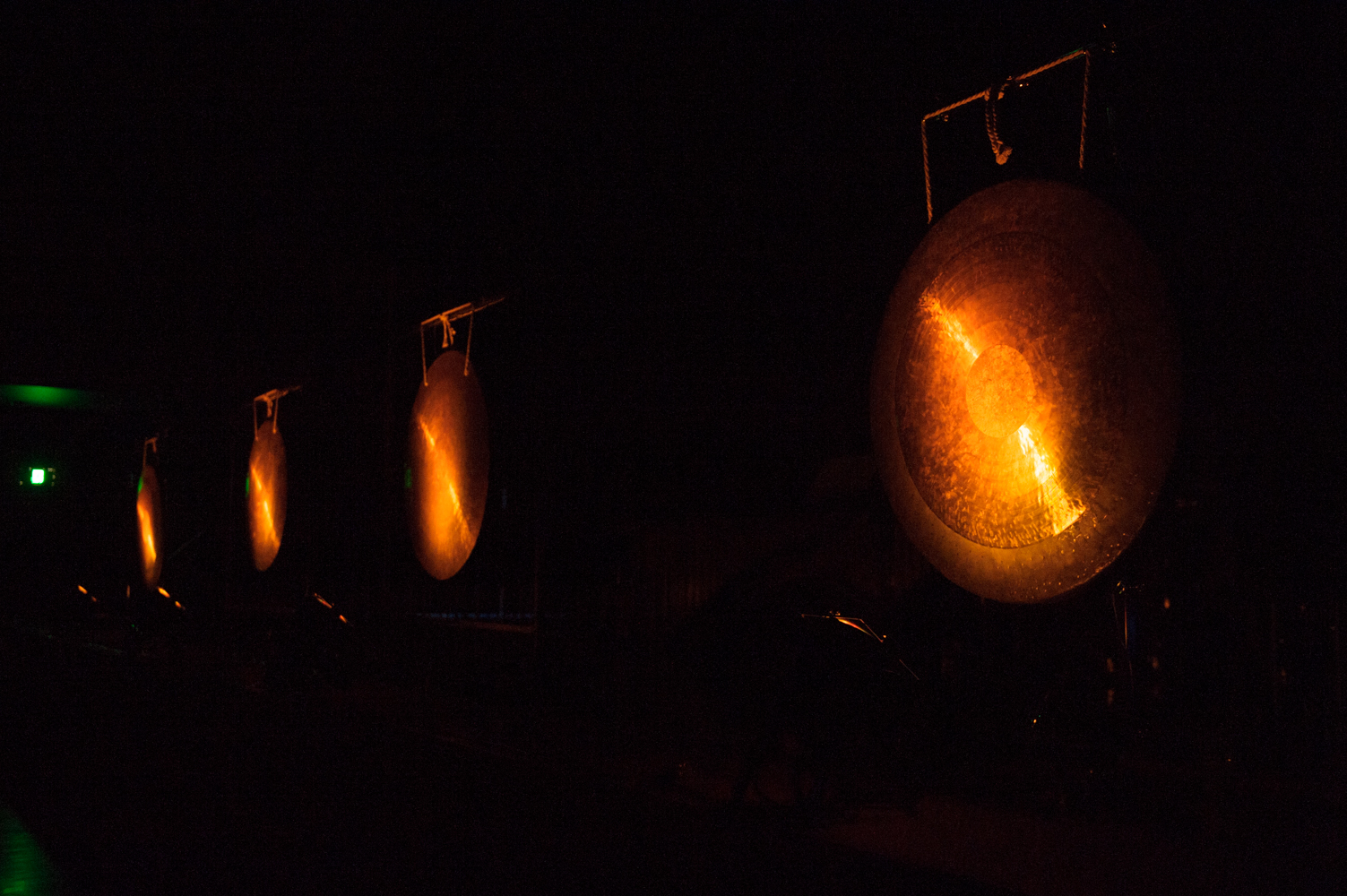 The audience retired to the stalls of the Elisabeth Murdoch Hall for Garsden’s beautiful new work Messages to Erice I & II. Four large tam-tams were arrayed along the front of the stage and lit from below by yellow-gold spot lights. Each tam-tam is fitted with a transducer (like a speaker without the cone). Garsden has made recordings of each individual tam-tam. In the live performance, he manipulates these recordings and plays them back through the instrument via the transducer. The four tam-tams stand there like bronze breastplates, or altars, their mysterious sounds emanating not just toward the audience, but filling the high ceiling of the hall with shimmering, insect-like buzzing and clear, brassy tones. The lights suddenly change to a silvery-blue as the second movement (or “process”) of the piece begins. Here the sound signals are further processed, creating an alien sound world of “washboard” vibrations and fierce roaring. Garsden motivated the festival’s theme in several ways. The algorithmic relationship between the sound-processing of the different tam-tams is related to the relationships of the characters in Víctor Erice’s 1973 film El Spíritu del Colmena. The piece furthermore makes use of recordings, which can be considered moving “sound images.” Most strikingly, the performance itself was a moving cinematic gesture.